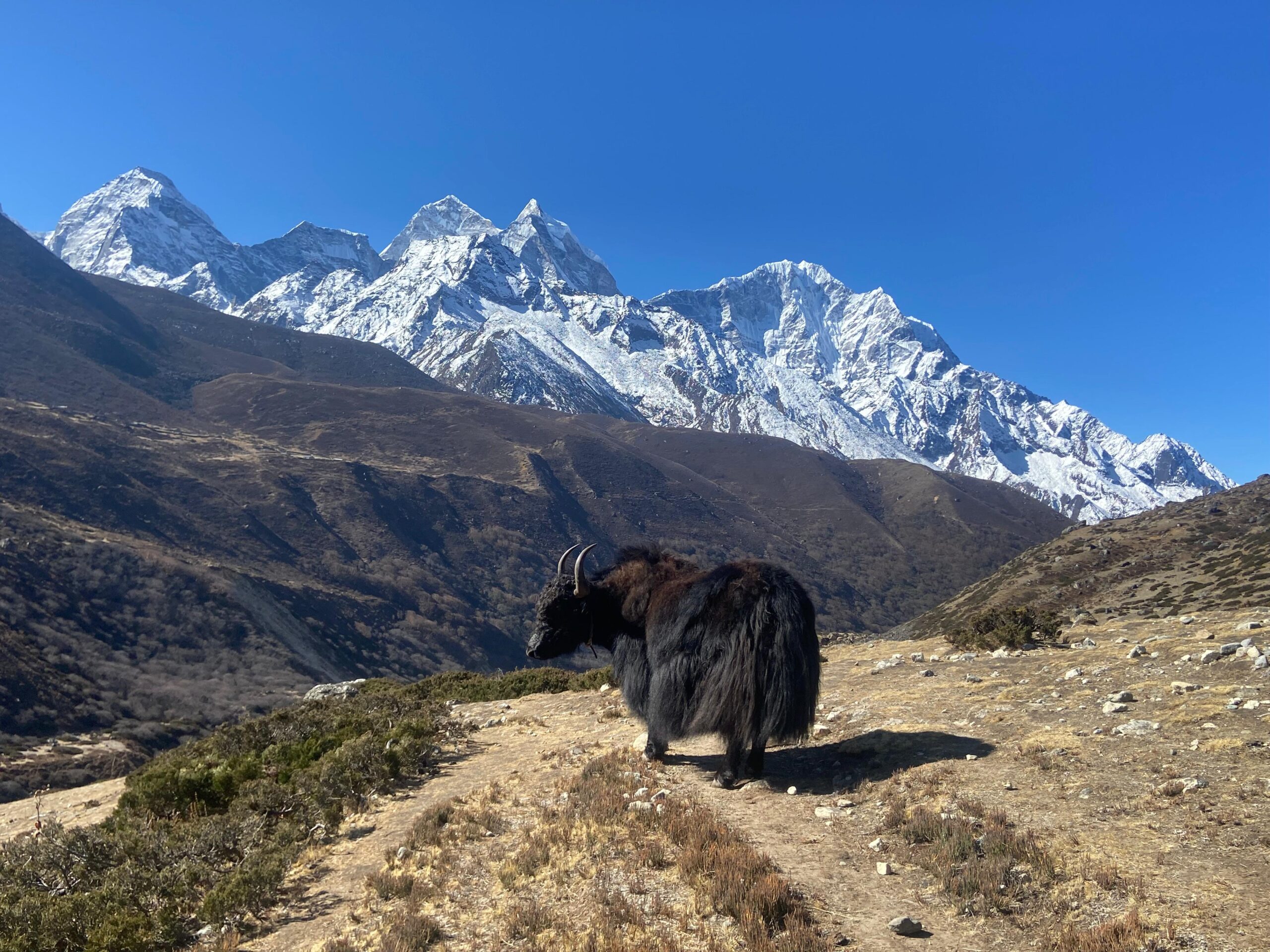After lunch in Pangboche, we start walking again for about 3 hours to Dingboche. With the magnificent Mt AmaDablam to the right all the time, this course triggers some contemplation into the phenomena in the immediate environment along the way – yaks with loads on their backs walking in a file, a tahr jumping care freely on slopes only perhaps the most daring would think of giving a shot at and a male impeyan pheasant – the national bird of Nepal – dancing with a hope to impressing a female nearby who till now seems to simply be turning a blind eye … a smile and a gentle shake of the head in sincere appreciation of the visually appealing yet intellectually challenging ways of things.Dingboche, with around forty households, is home to approximately two hundred locals.